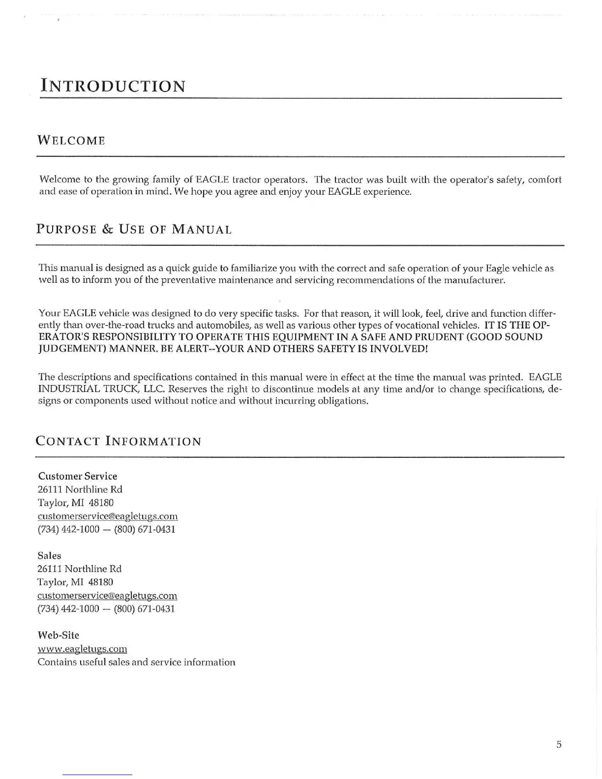 ·EAGLE tractor operators. The tractor was built with the operator's safety, comfort
