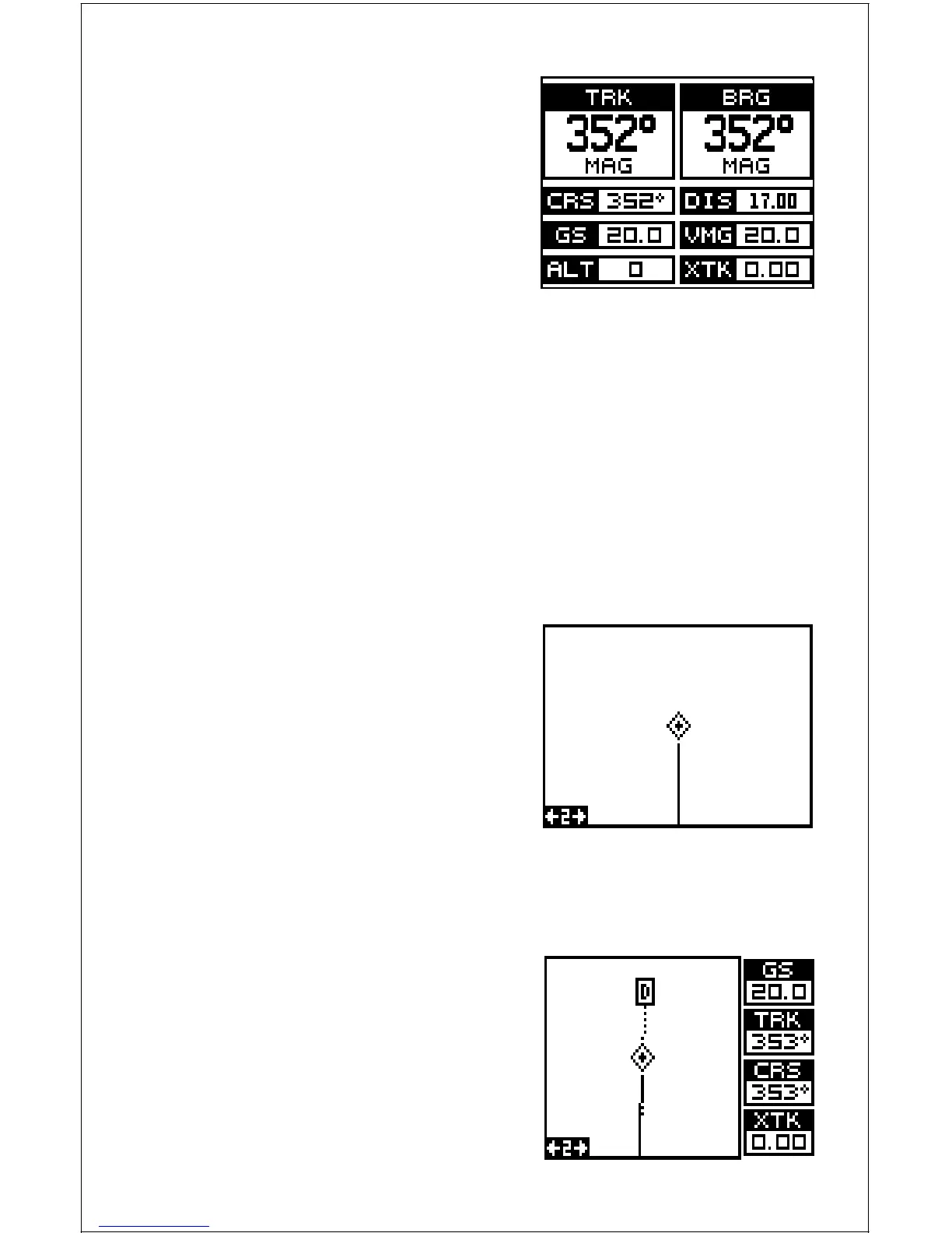 (TRK), and ground speed (GS). The other boxes show navigation data