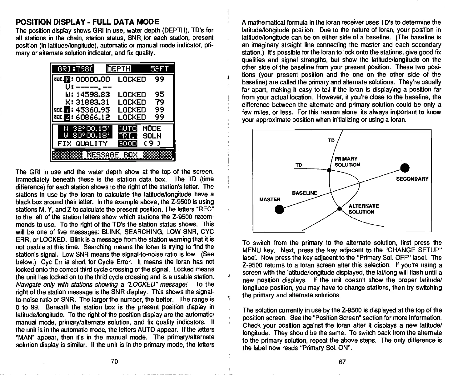 Z-9500 returns to a loran screen after this selection. If