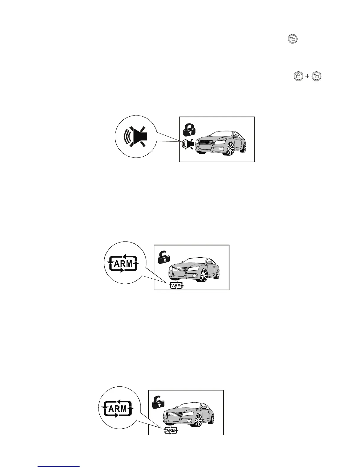 Note: Under Silent Arm mode, if Sensor, Door, Hood or trunk been triggered, the siren will