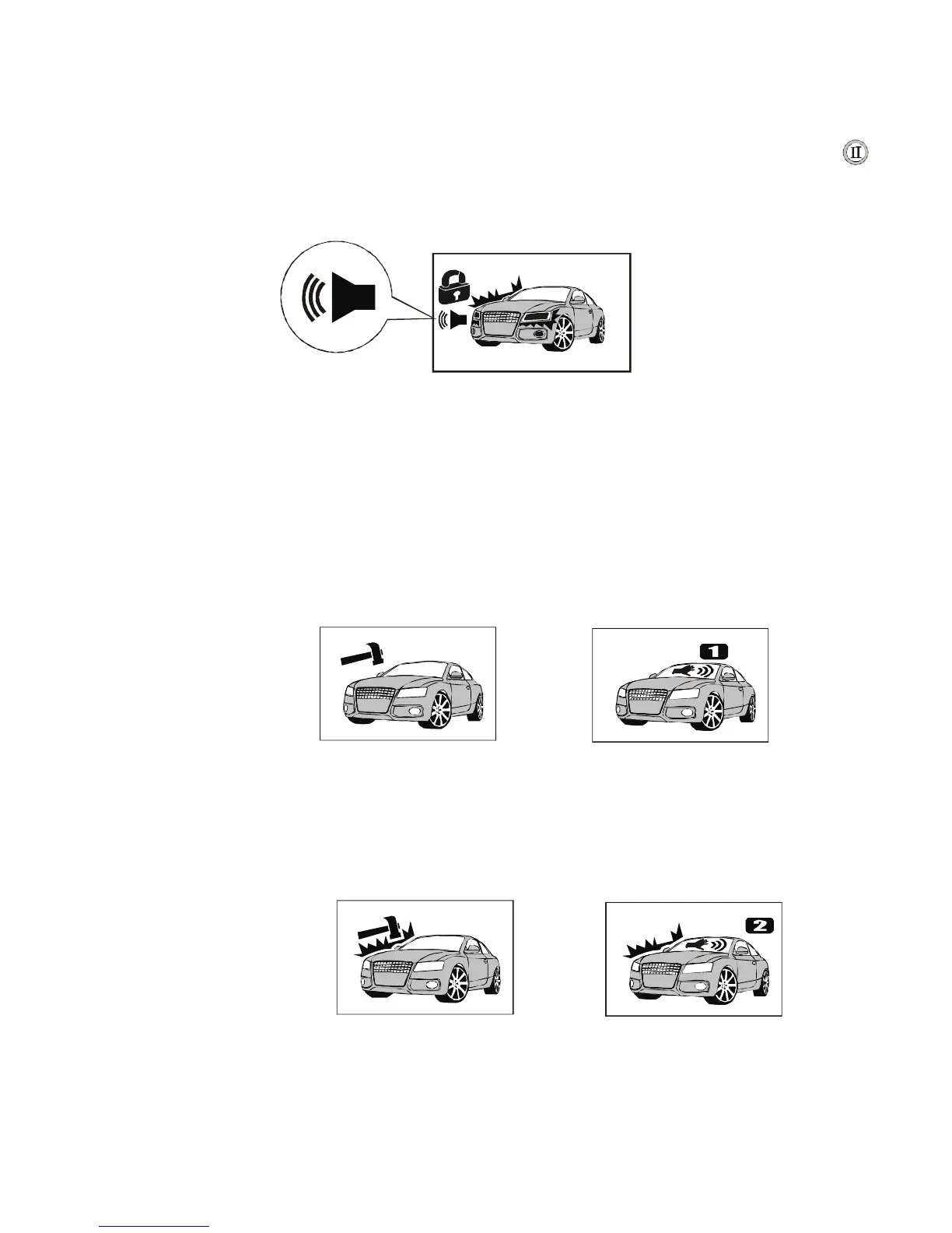 -Heavy impact will activate the 2nd stage sensor and trigger the alarm for 30sec. 2-way