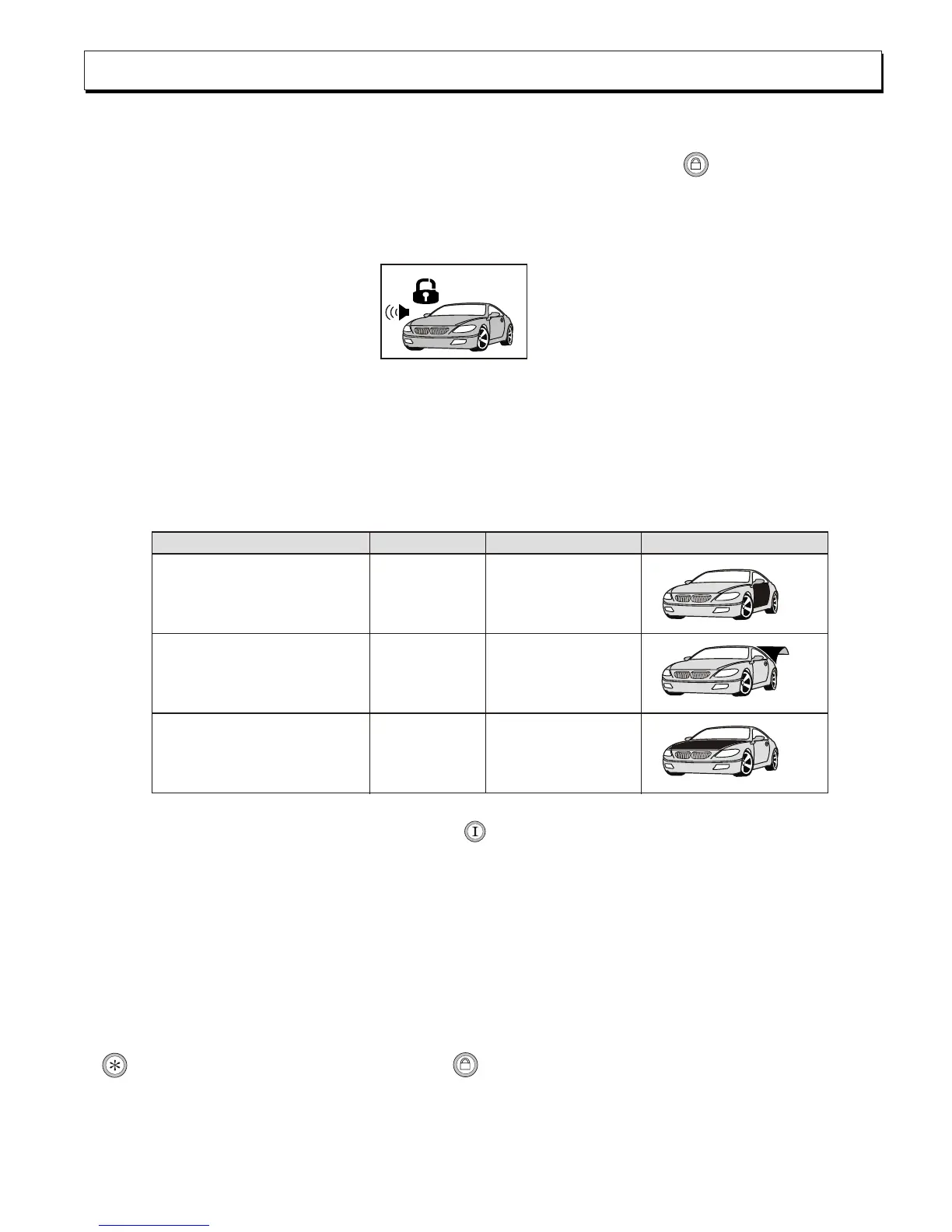 in disarmed or Acc off position) . The system will respond one siren chirp, one lights flash,
