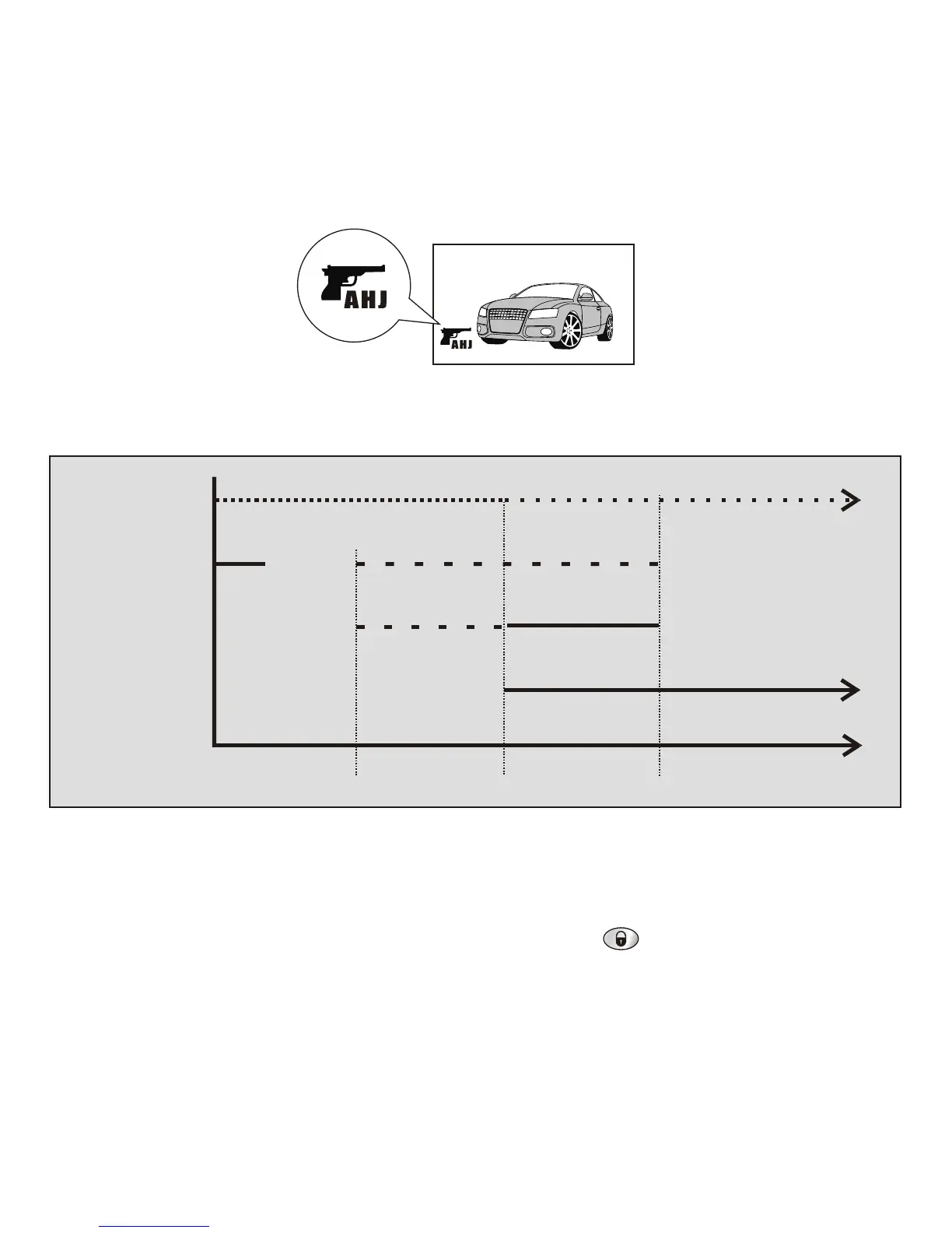 If enter anti car-jack mode, the Parking lights will flashing once and the LED will fast