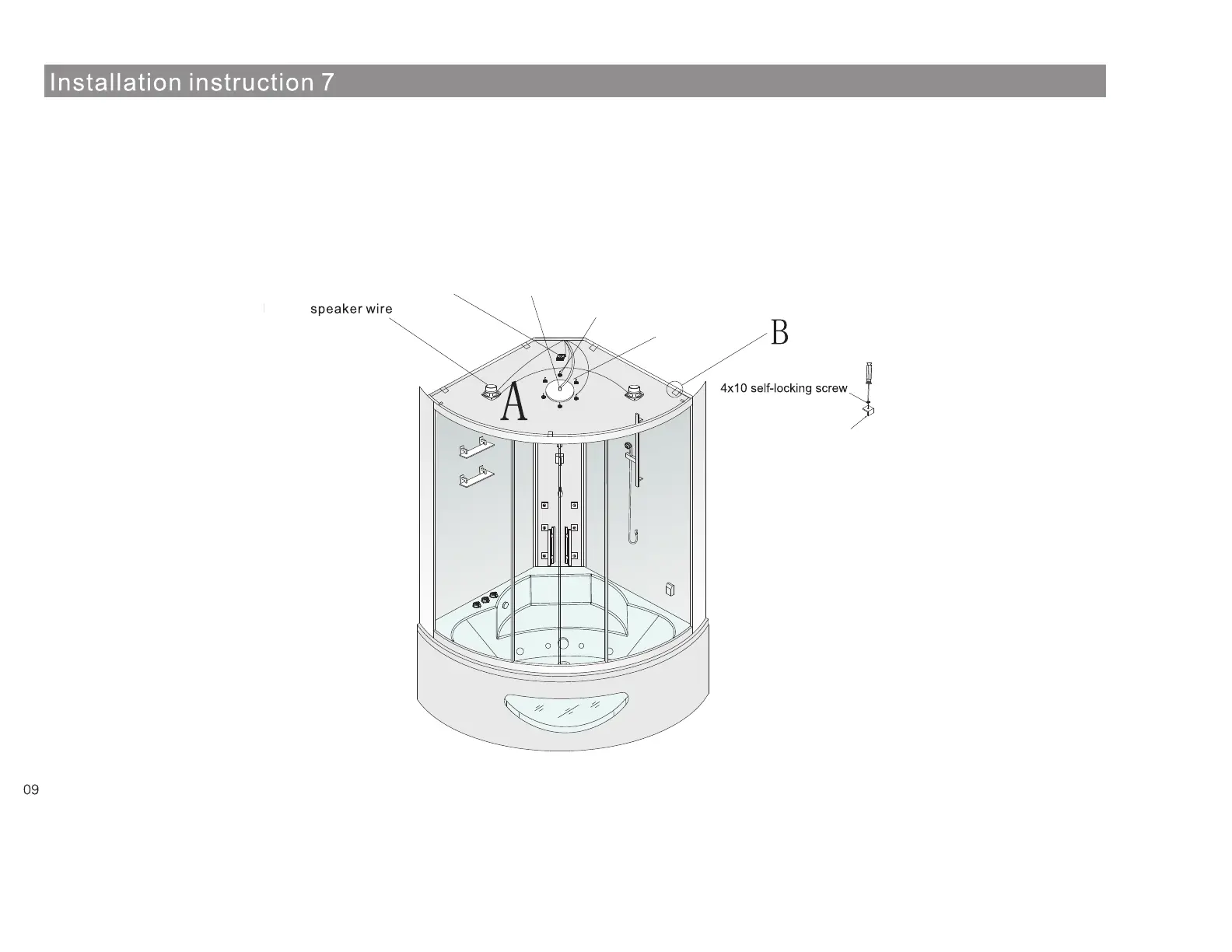 1. Put the top cover onto the steam shower carefully (illustrated in Drawing A)