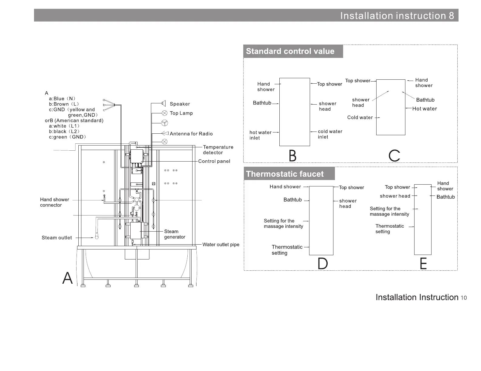 shower is without thermostatic faucet Illustrated in Drawing D and E.