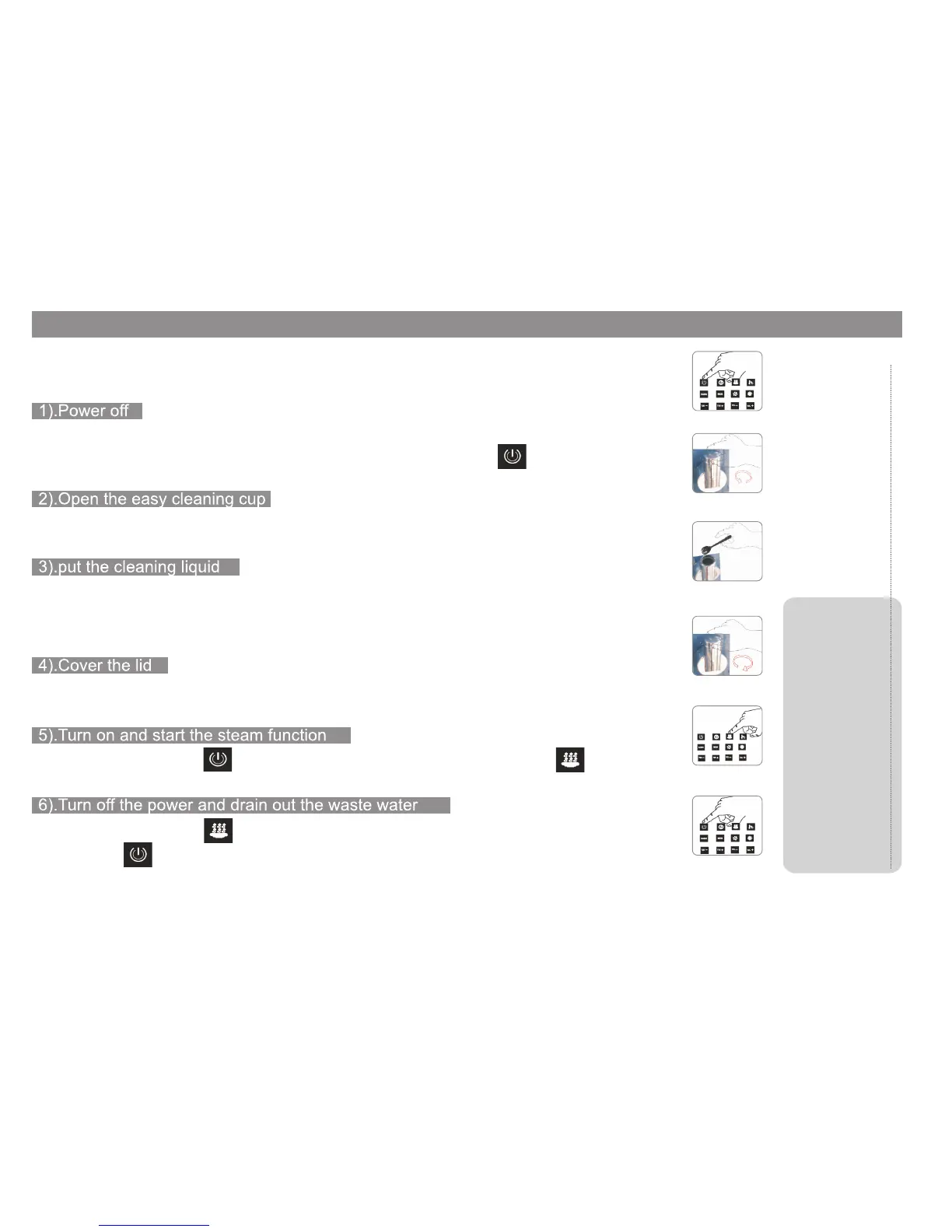 After replacing the cap, Press to turn on the steam generator function and the system will begin to clean