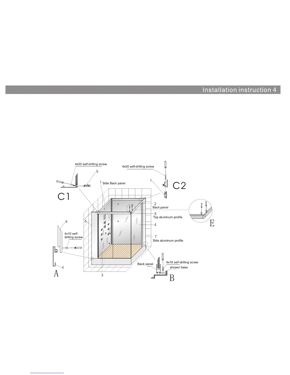 4. Fasten the No.1 and No.2 panels to the shower base with 4x16mm screws. Illustrated in drawing B.