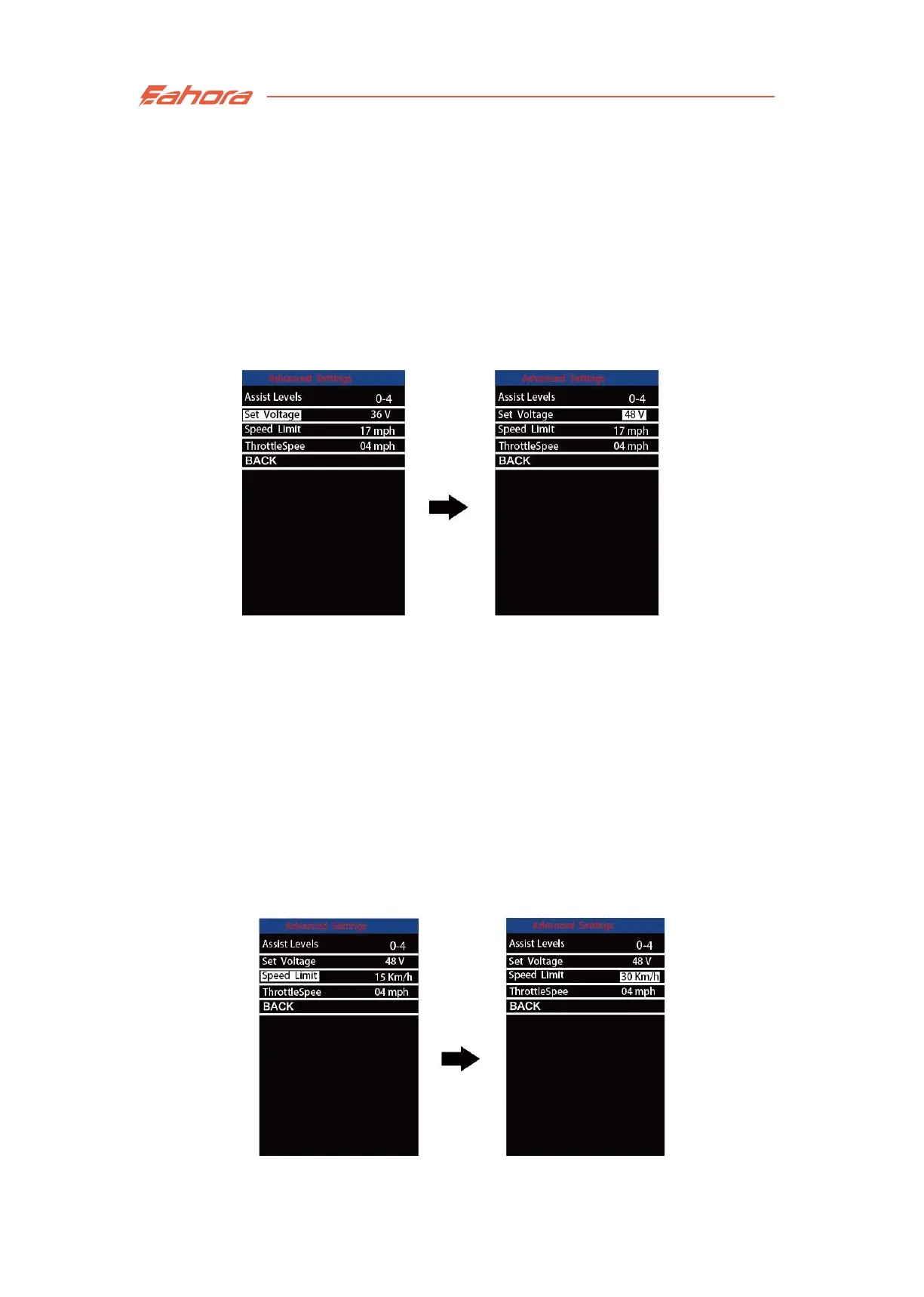 can be switched to 36 volts or 48 volts . The default voltage is 48 volts.