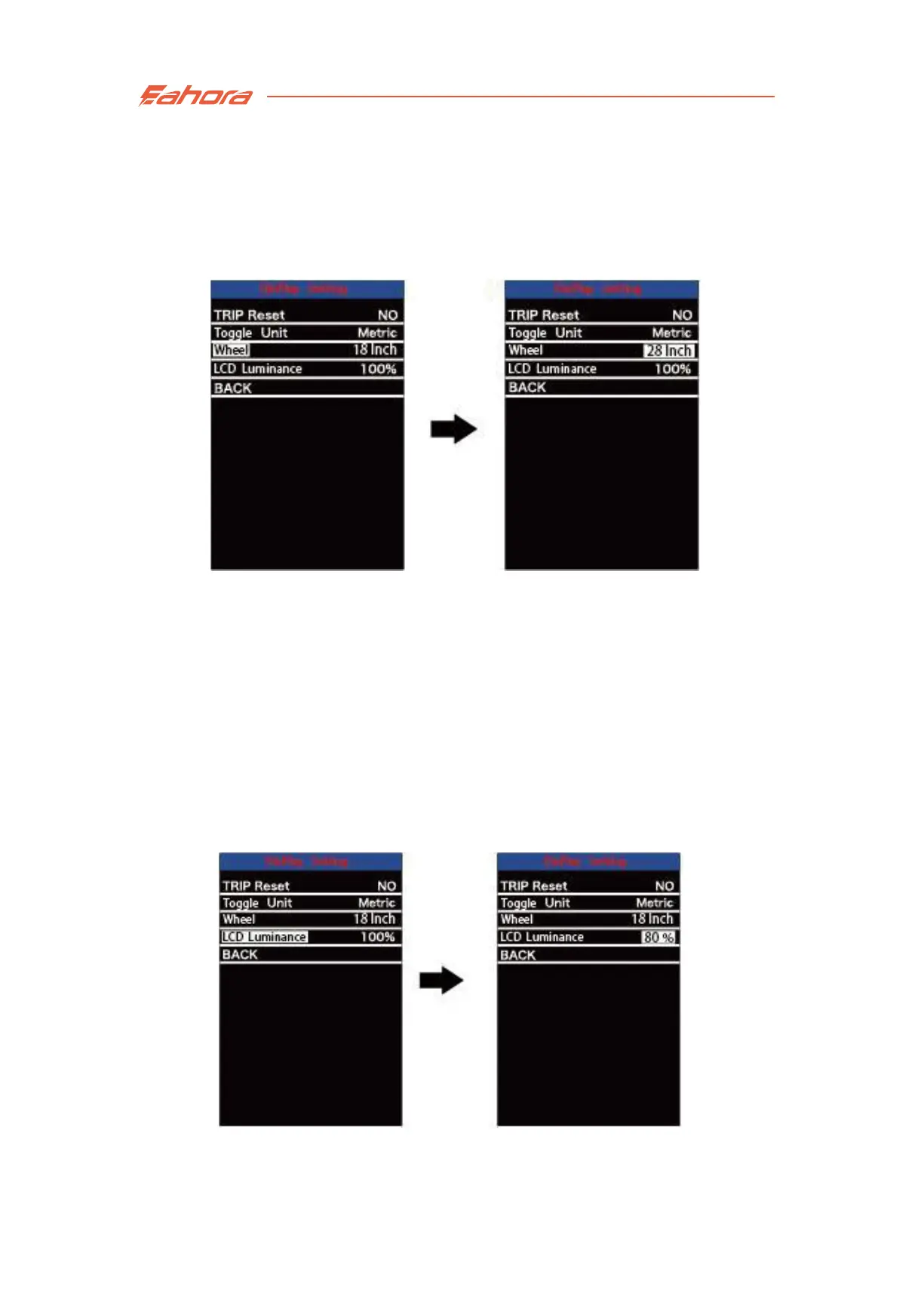 Wheel refers to wheel diameter settings. Press the +/- button to increase