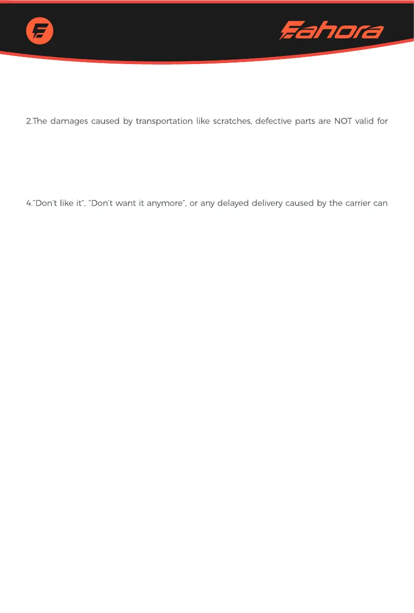3.Any e-bike returns should be authorized by eAhora in advance via emails. Returns