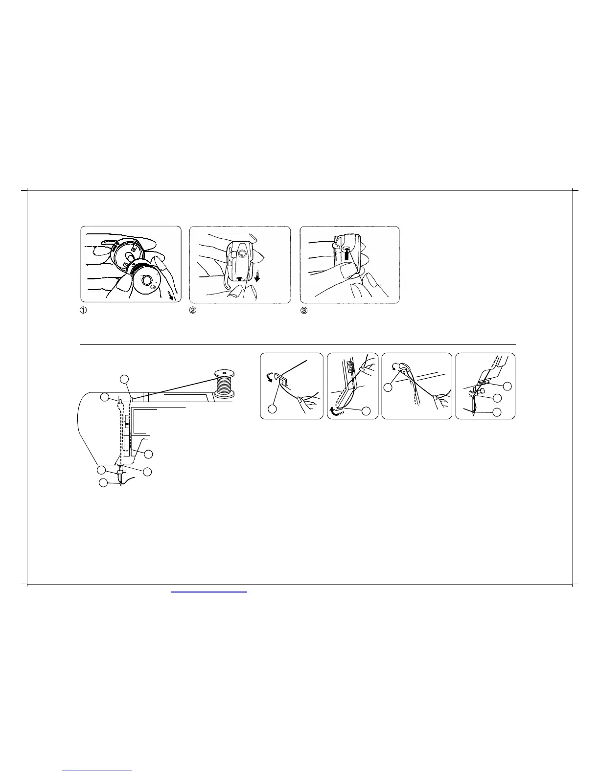 2.Whileholdingthreadnearspool,drawthreaddownintothetensionareaandthenaround