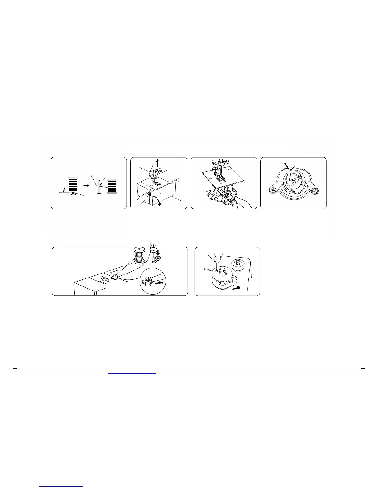 Drawthreadfromspool.Guidethethreadaroundthebobbinwinderthreadguide.