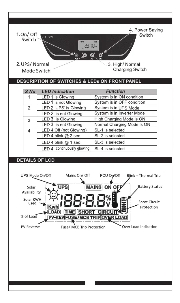 FRONT PANEL OF MPPT OFF GRID HYBRID SOLAR PCU