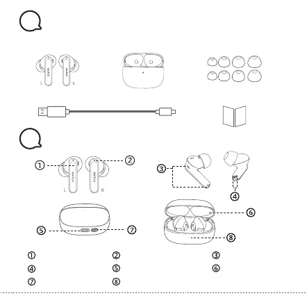 EarFun Air 2 - Whats in the Box; Product Diagram
