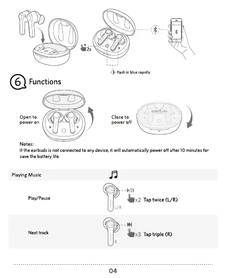 If the earbuds is not connected to any device, it will automatically power off after 10 minutes for