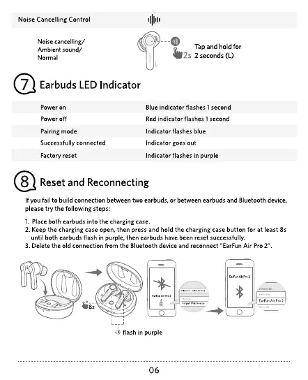 f you fail to build connection between two earbuds, or between earbuds and Bluetooth device,