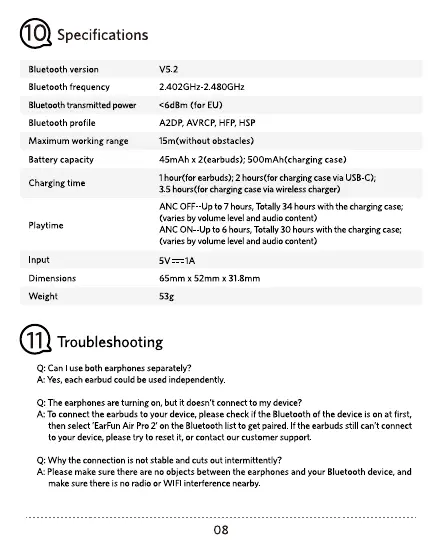 A: TOconnect the earbuds to your device, please check if the Bluetooth Ofthe device is on at first,