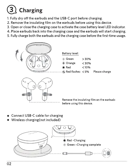 5. Fullycharge both the earbuds andthe charging casebefore the first-time usage.
