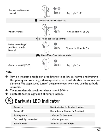 distance. We suggest you turn Offthe game mode when you usethe earbuds