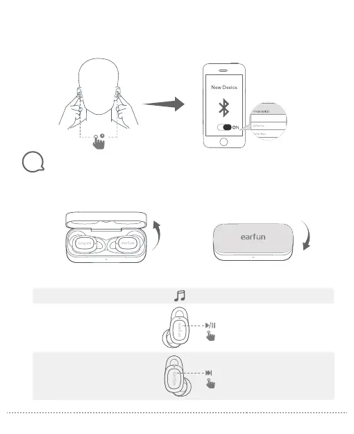 Step 1. Make sure earbuds are power on, and then touch and hold the both earbuds touch button at the same