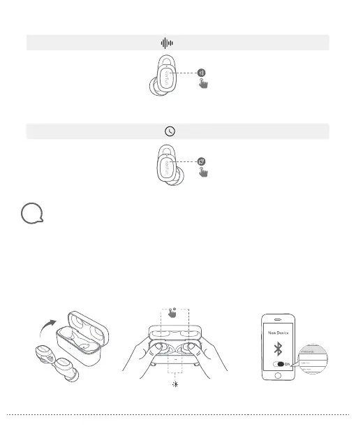 2. Keep the charging case open, then touch and hold the button on each earbud at the same time for at least
