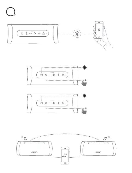 Step 2: Power on speaker B, and then press and hold the Bluetooth buttons of both speakers