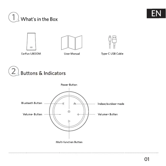 EarFun UBOOM - Whats in the Box; Buttons & Indicators