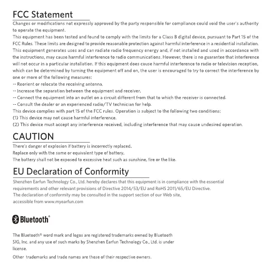 Shenzhen Earfun Technology Co., Ltd. hereby declares that this equipment is in compliance with the essential