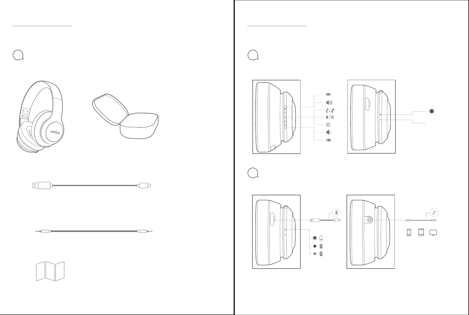 EarFun Wave - Whats in the Box; Buttons and LEDs Overview; Connections and Indicators