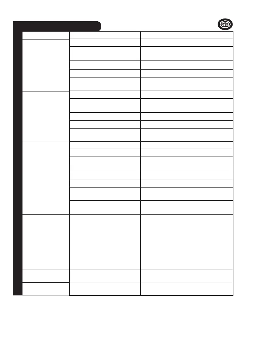 Air inlet blocked Check the condition of the Filter and