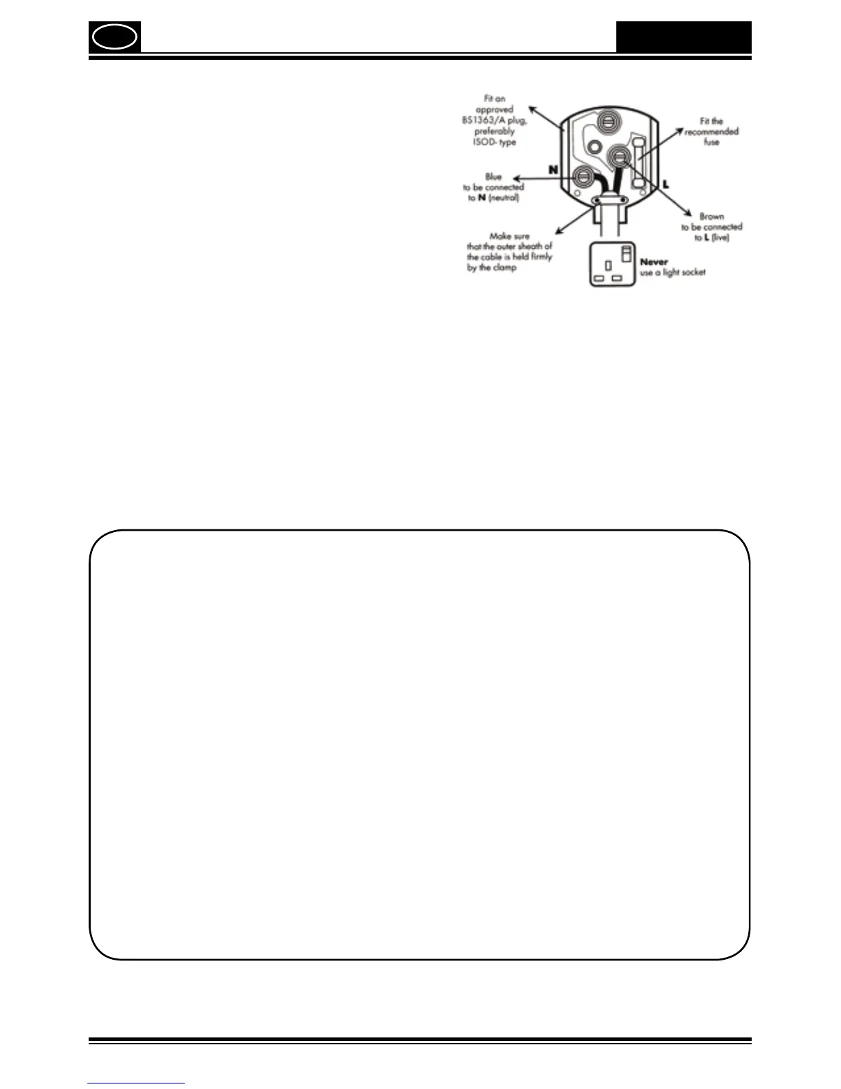 Should it be necessary to exchange the fuse in the plug only use fuses approved by ASTA in