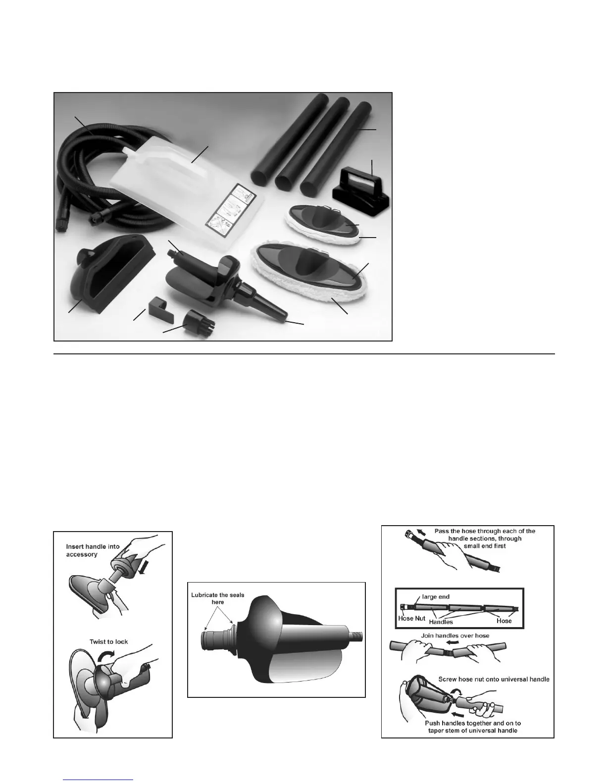 Please note: Not all of the accessories shown in this instruction booklet are included in every steam cleaning