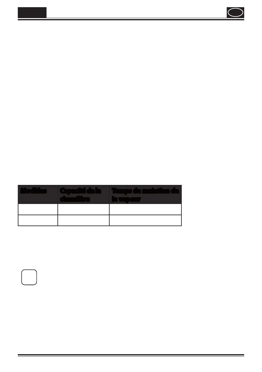 *Temps de maintien de la vapeur avant la coupure de sécurité.