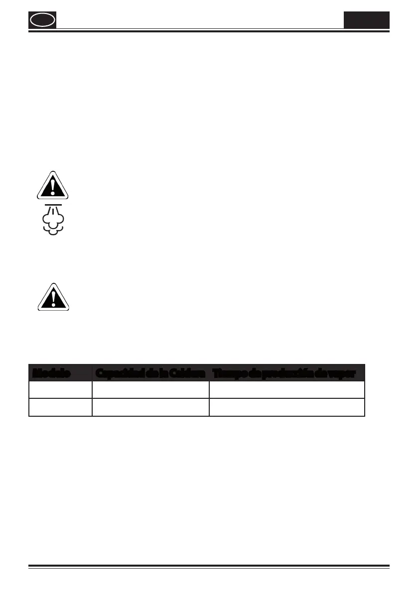 Modelo Capacidad de la Caldera Tiempo de producción de vapor