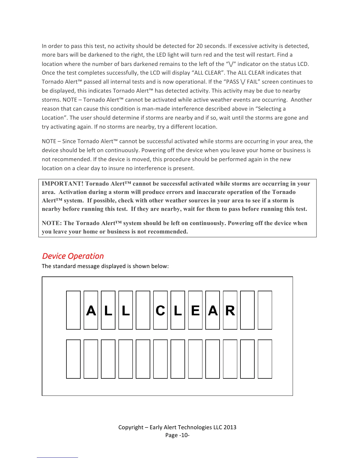 NOTE: The Tornado Alert™ system should be left on continuously. Powering off the device when