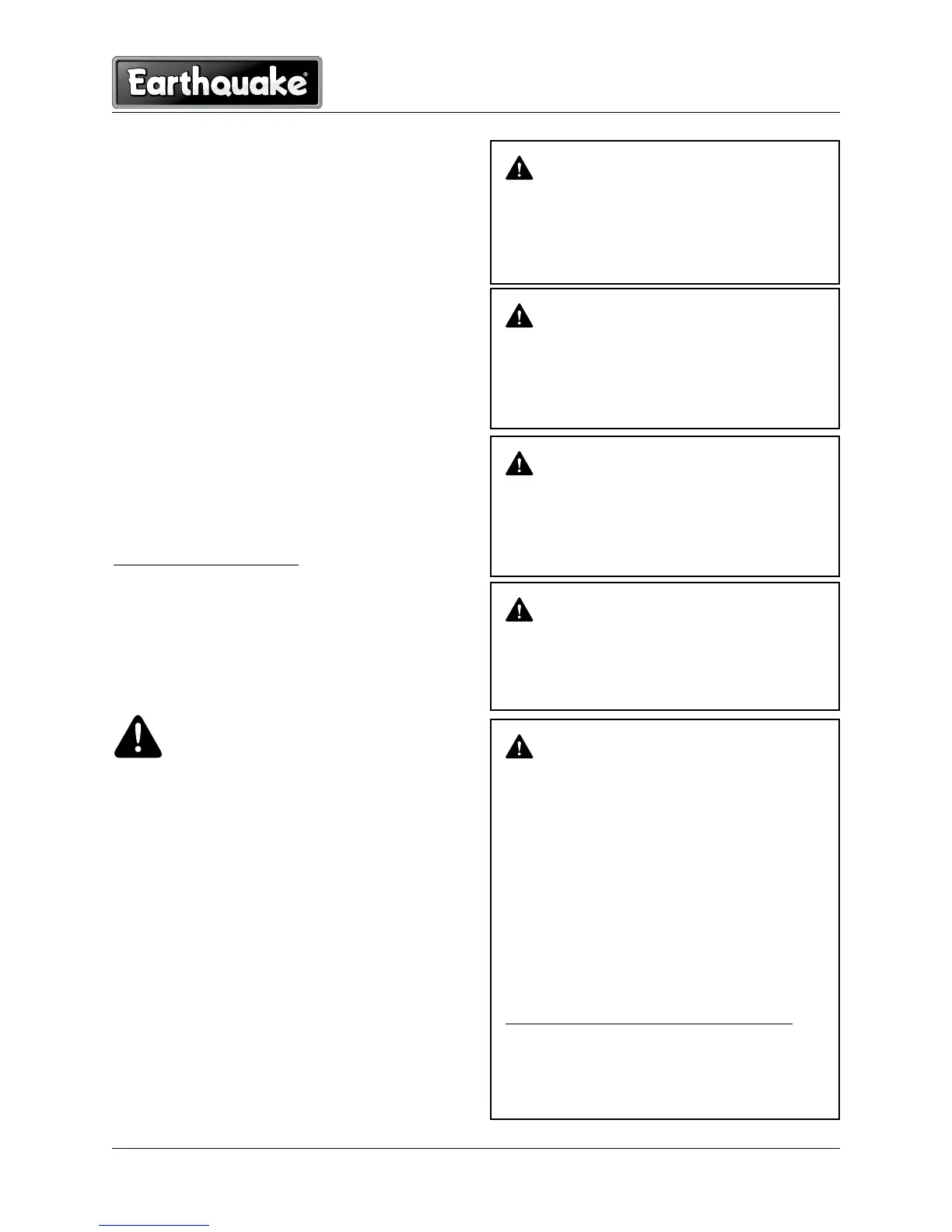 Check for parts online at www.getearthquake.com or call 800-345-6007 M-F 8-5 CST