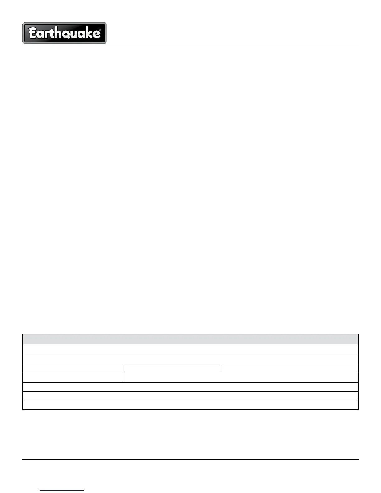 tration is received by Earthquake within 30 days of purchase. You can register your warranty online by visiting www.getearthquake.