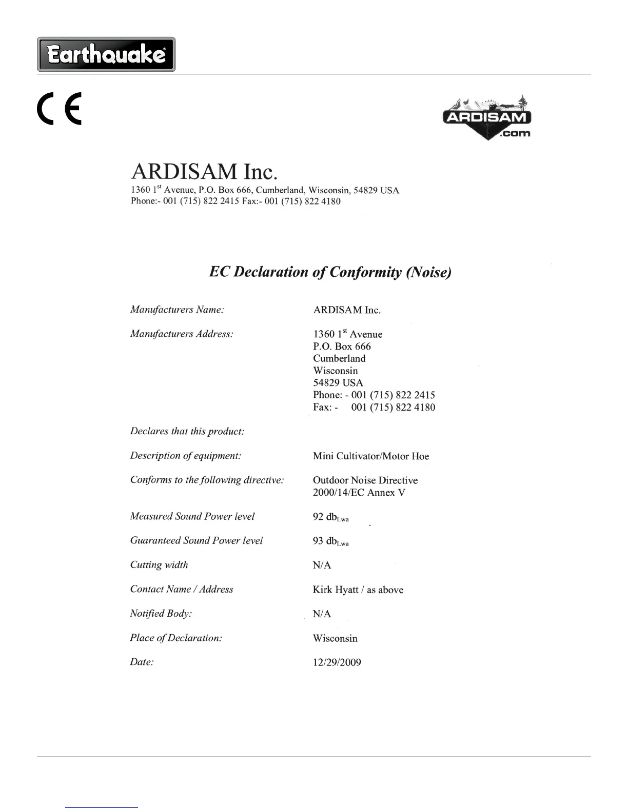 EarthQuake MC43 - EC Declaration of Conformity (Noise)