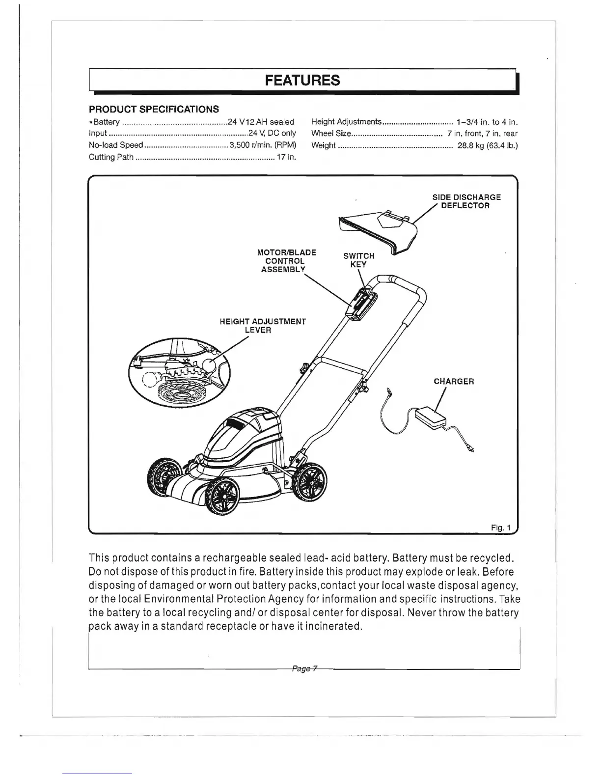 Wheel Size ......................................... 7 in. front, 7 in. rear