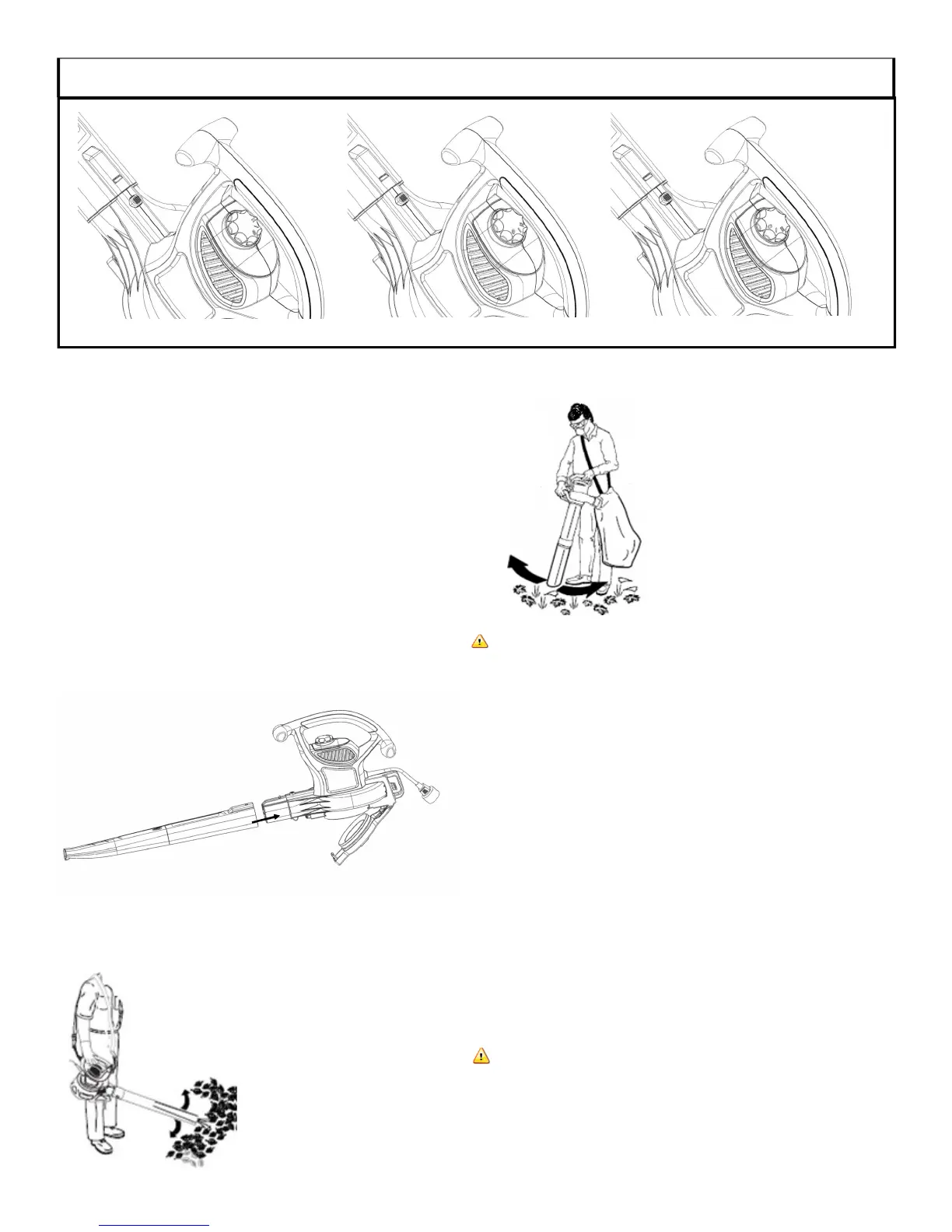 Position the tube slightly above the debris/leaves. Switch the tool on,