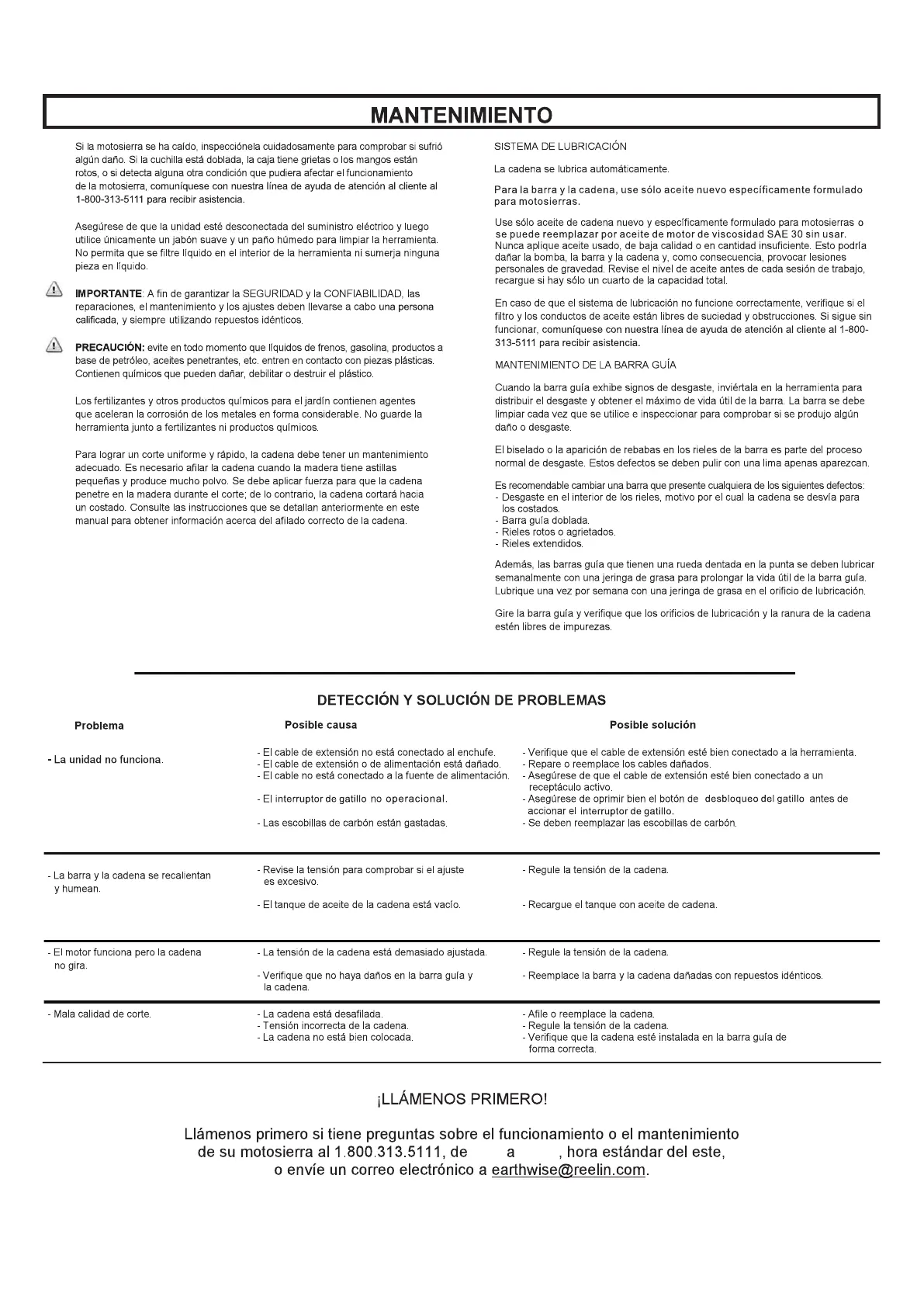 - La cadena está instalada hacia atrás - Invierta la cadena de modo que las cuchillas miren en la