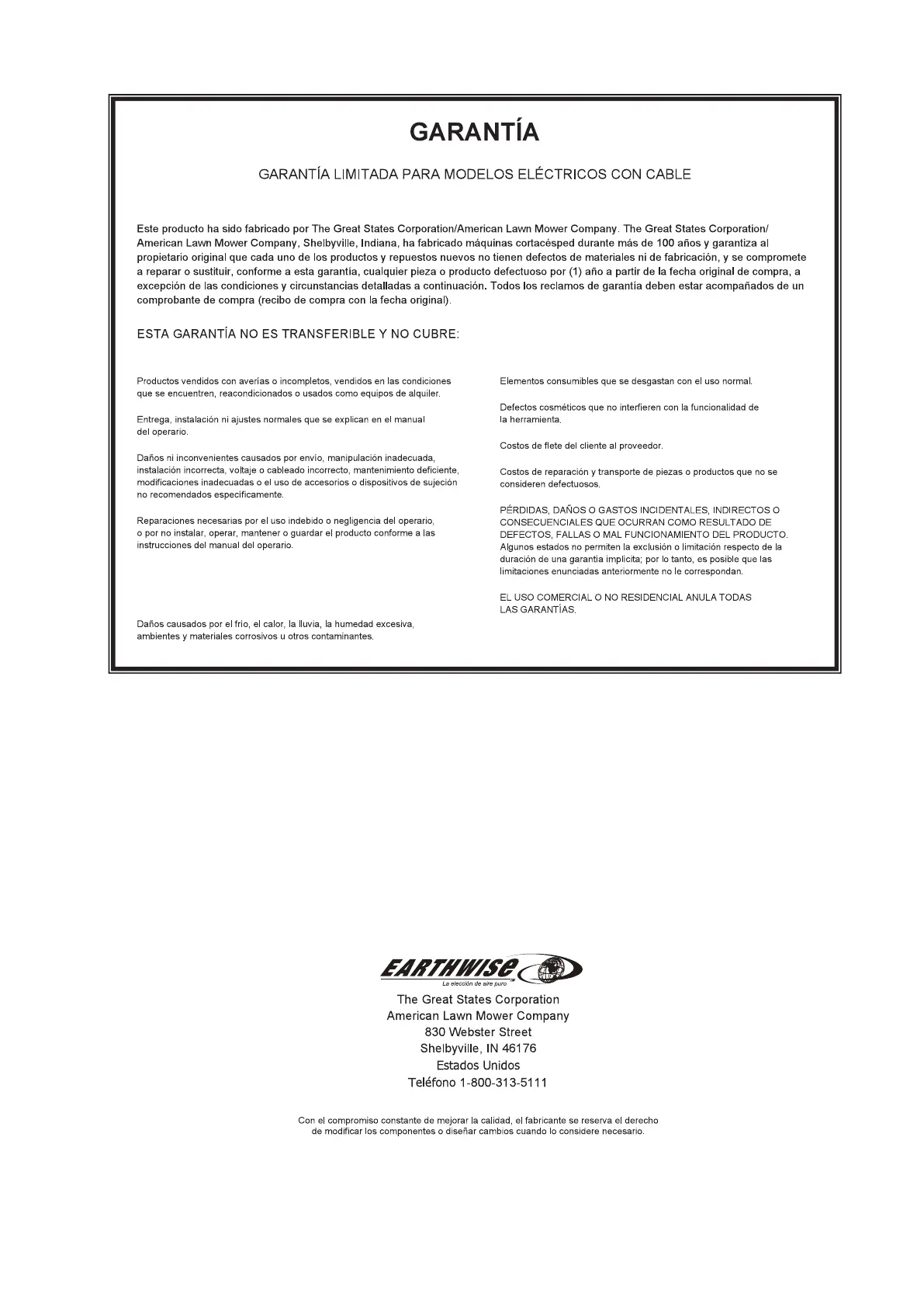Esta garantía no es transferible y solo se aplica a productos vendidos