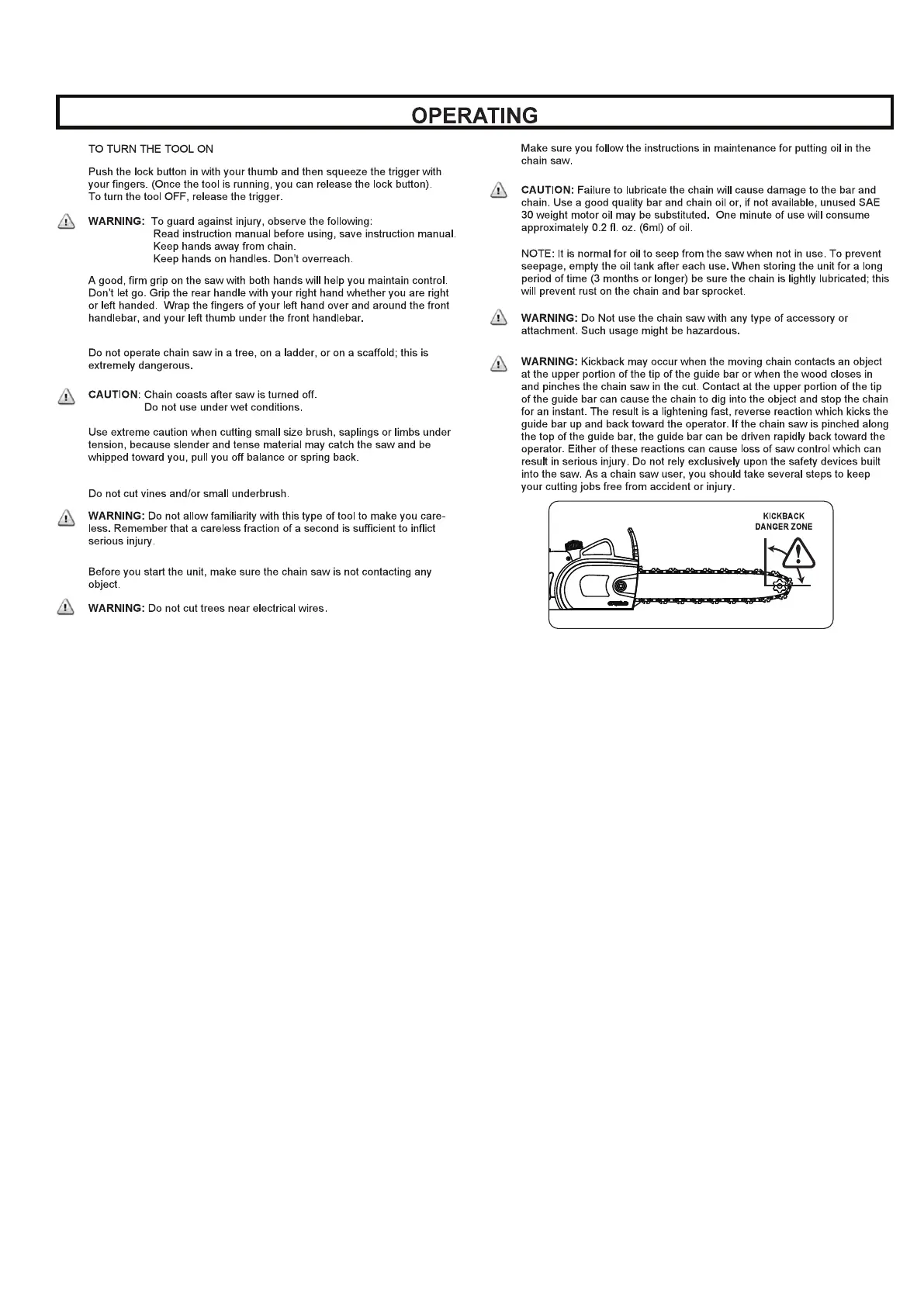 EarthWise CS31014 - Operating Procedures; Starting and Stopping the Chainsaw; Felling a Tree Safely