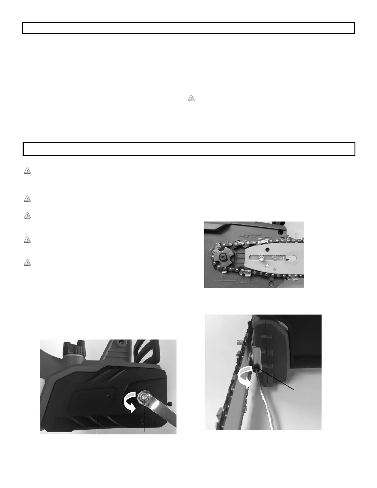 • Débrancher la tronçonneuse de l’alimentation. Posez la chaîne sur