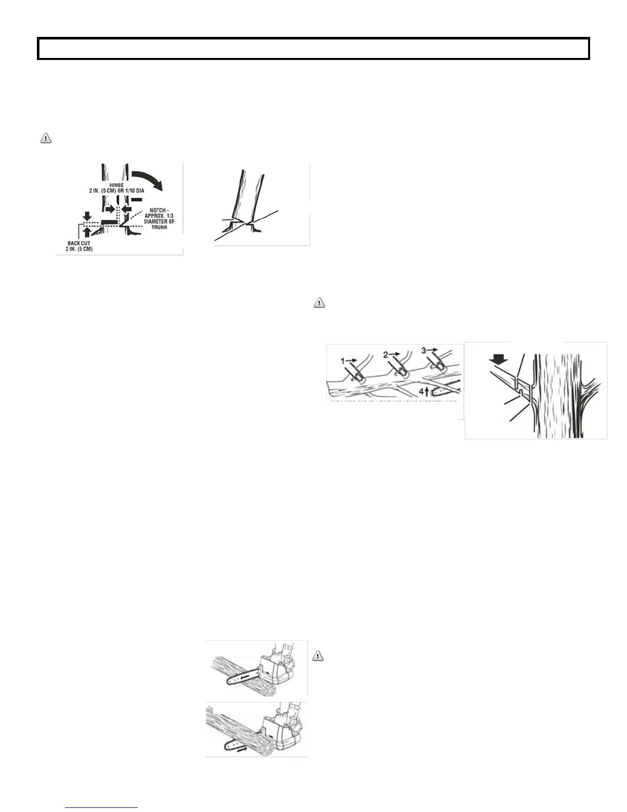 Work slowly, keeping both hands on the chain saw with a firm grip.