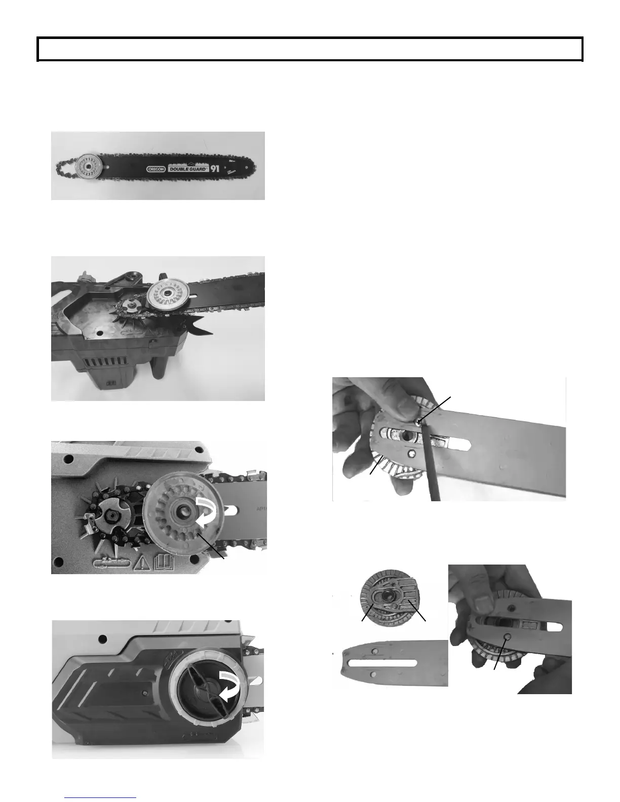 guide-chaîne, la chaîne est serrée mais peut être tournée à la main