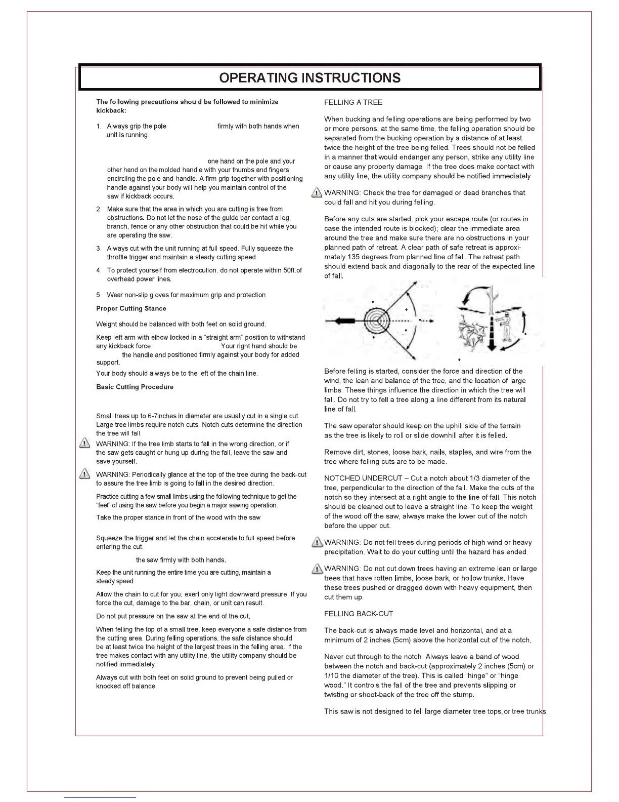 Do not use the pole saw to fell saplings. Use the chain saw without
