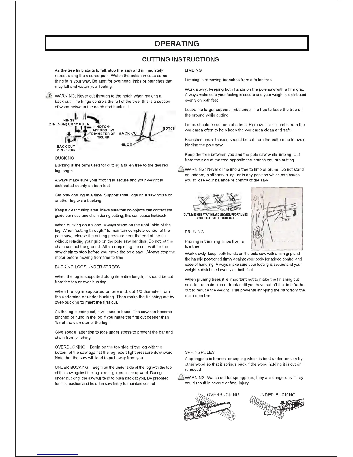 of guide bar to make this cut. (Cut 1/3 through diameter of limb.)
