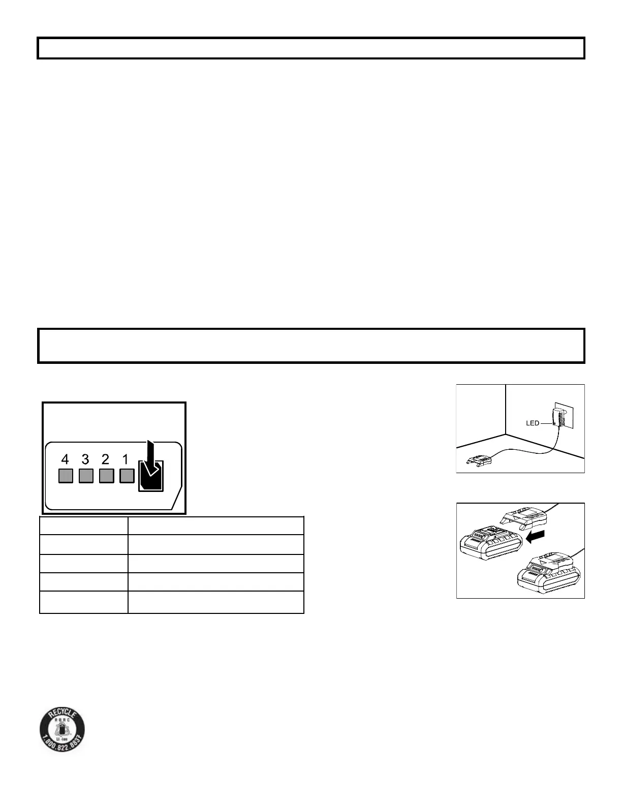 LED 1, 2 encendidos Batería cargada al 25%-50%