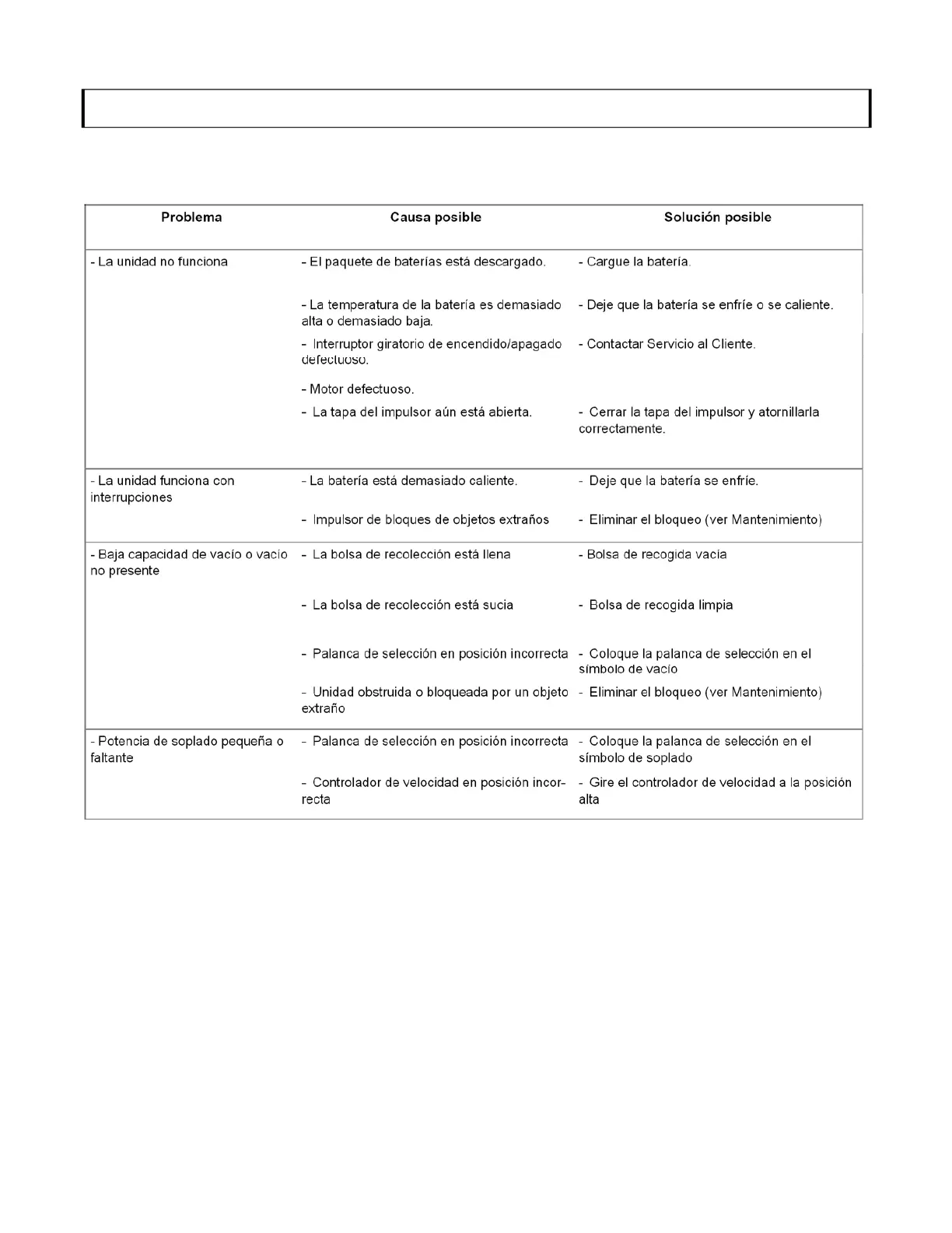 Problema Causa posible Solución posible
